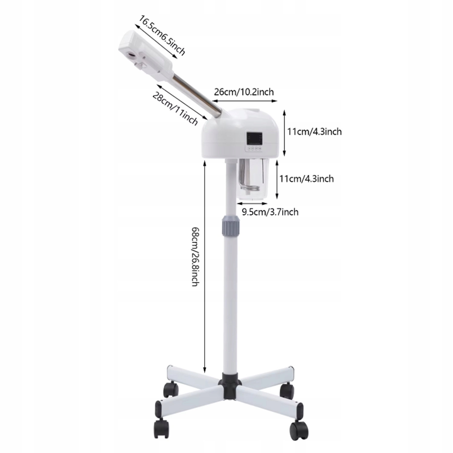 Zastosowanie technologii grzewczej PTC gwarantuje szybkie nagrzewanie przy jednoczesnej ochronie przed osadzaniem się kamienia, co znacząco przedłuża żywotność urządzenia. Bezpieczeństwo użytkowania podnosi inteligentny system ochrony, który automatycznie odcina zasilanie przy braku wody, o czym informuje lampka ostrzegawcza. Solidna, krzyżowa podstawa na uniwersalnych kółkach z hamulcami zapewnia stabilność i mobilność, pozwalając na łatwe przemieszczanie urządzenia między pomieszczeniami w domu lub salonie kosmetycznym.